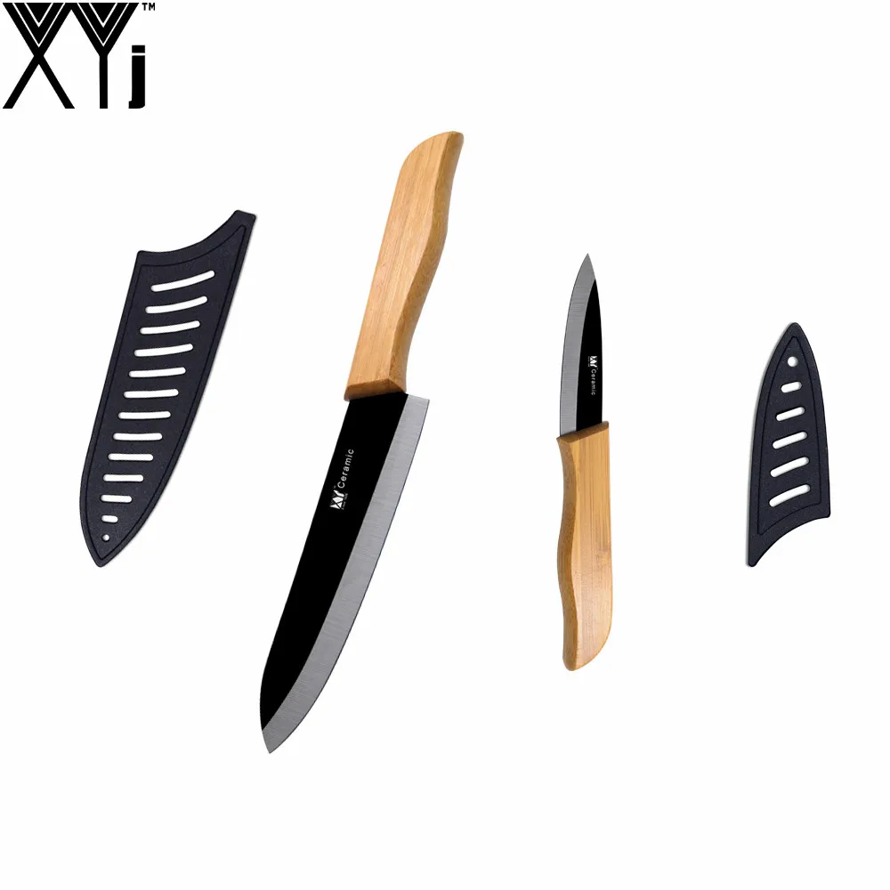 XYJ Brand Kitchen Knives Bamboo Handle Black Blade 3" 4" 5 ...